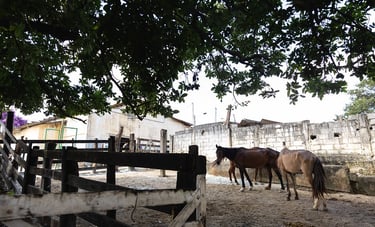 A nova estrutura contará com baias cobertas para os cavalos, área de pasto cercada para circulação dos animais, sala para atendimento veterinário e também espaços de apoio para a equipe de trabalho, como recepção e vestiários.