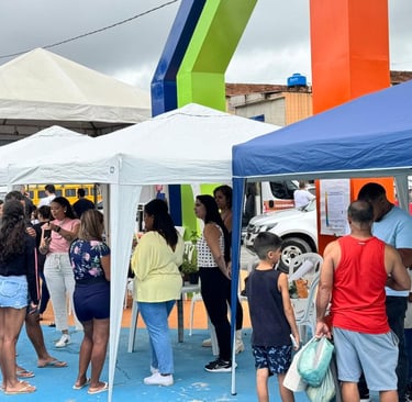 A área da saúde teve papel central na programação, com a presença do Vacimóvel, ampliando o acesso à vacinação e fortalecendo as ações de prevenção. Também foram oferecidos serviços como aferição de pressão arterial, medição de glicemia, realização de testes rápidos, orientações odontológicas e distribuição de kits de higiene, reforçando o cuidado integral com a saúde e o bem-estar da população.