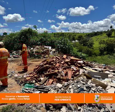 Equipes fazem recolhimento de entulho e lixo descartado irregularmente e reforçam conscientização ambiental.